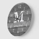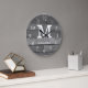 Monogrammed wall clock with a Reclaimed Wood texture background. Personalize the family clock with your family name and monogram initial letter