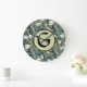 Grande Horloge Ronde Sage Green Chinoiserie Floral White Initial