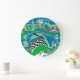 Sage Vert, Bleu, Noir et Blanc Abstrait Fluid horloge art.