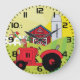 Grande Horloge Ronde Scène de ferme avec coq chantant sur tracteur
