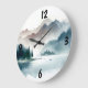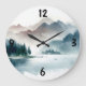 Apportez la beauté sereine d'une forêt d'hiver Misty à votre espace avec cette horloge murale en verre silencieux. Doté d'un paysage d'inspiration vintage, de montagnes et d'un lac paisible, il s'agit d'un art de style aquarelle.