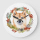 Grande Horloge Ronde Shiba Inu Festive de la couronne de Noël Coupe