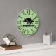 Black modern stegosaurus silhouette clock with a green background and large roman numerque.