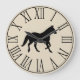 Rustic black horse silhouette round clock with a neutral taupe print background