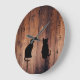 Grande Horloge Ronde Silhouettes de chats modernes sur bois foncé rusti