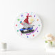 Grande Horloge Ronde Skateur gnome heureux avec des cadeaux et un cierg
