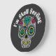 Magnifique "I'm Skull Surfing" lettering Large Horloge avec crâne abstrait coloré et décoré pour la saison d'Halloween.