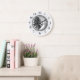 Soleil céleste et lune Il est temps de montrer votre art préféré, des photos, et du texte avec une horloge murale personnalisée de Zazzle. Disponible en deux tailles, cette horloge est imprimée en utilisant le processus AcryliPrint®HD afin d'obtenir une qualité d'impression irréprochable. Cette horloge ronde est une idée cadeau originale pour vos amis, votre famille ou pour vous.