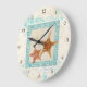 Grande Horloge Ronde Starfish Sea Shells Ocean Greek Key Pattern