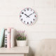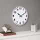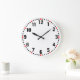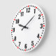 Une belle simple face d'horloge de style analogique, des chiffres en gras attrayants avec les minutes marquées de taches noires et les heures dans des taches rouges légèrement plus grandes.