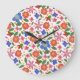 Grande Horloge Ronde Style d'art populaire Floral sur blanc Acrylique h