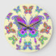 Grande Horloge Ronde Style tatoué Butterfly Colorful