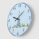 Grande Horloge Ronde Stylo Tour Eiffel et croquis d'encre en bleu