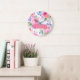 Grande Horloge Ronde Sunrise Floral Boho Custom Name Design