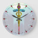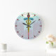 Grande Horloge Ronde Symbole médical CADUCÉE D'OR Lumière sarcelle Bleu
