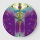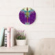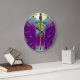 Grande Horloge Ronde Symbole médical Caducée Or Violet Vert Cyan