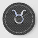 Un chrome argenté comme Taurus Zodiac Signer sur un arrière - plan de texture en fibre de carbone noir. Un design urbain moderne et racé pour une idée cadeau sur mesure.