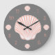 Décor murale sur le thème de la plage horloge dans un design chic pêche et coquille de pétoncle blanc qui comprend coquilles de pétoncles pour les numéros d'horloge et couleur arrière - plan gris que vous pouvez changer en ligne. Décorez vos murs d'une garde-temps décorée dans le style plage.