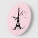 Stylish custom designer wall clock feh a beautiful and modern vector illustration of a the eiffel tower and can be personalized with any text you would like.