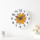 Grande Horloge Ronde Tournesol Main Tiré Jaune