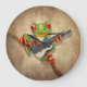 This cute design by artist Jeff Bartels feas a small green tree frog holding a scratched and worn acoustic guitar. The flag of Estonia is painted on the old guitar giving it a patriotic look. La adorable tree frog musician is sitting on a small branch and is looking forward with its large eyes. The over sized head and small body along with the details on the skin and guitar create a beautiful combination of a cartoon and réaliste look. This unique and patriotic Estonian tree frog guitarist pattern is parfaite pour tous les animaux et les music lovers.