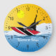Horloge murale de Trinité-et-Tobago avec du texte et des graphismes géniaux montrant un surfeur chevauchant les vagues de trini...Peut-être à Toco ! Disponible en rond (moyen et grand) et en carré.Choisissez votre style et votre taille.
