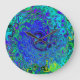 Grande Horloge Ronde Trippy Violet Bleu Abstrait Retro Liquid Swirl