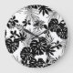 Grande Horloge Ronde Tropiques Noires et Blancs : Nature Silhouettée
