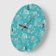 Grande Horloge Ronde Turquoise, coquillages de mer, arrière - plan turq