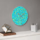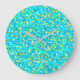 Grande Horloge Ronde Turquoise Vert Bleu Jaune Abstrait Motif
