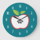 Grande Horloge Ronde Une pomme aux contours rouges et aux feuilles vert