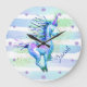 Grande Horloge Ronde Unicorne Magique Aquarelle Bleu