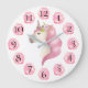 Grande Horloge Ronde Unicorne rose Jolie fille Pastel Floral