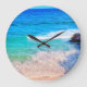 GRANDE HORLOGE RONDE VAGUES D'OCÉAN TURQUOISE BLEUE TROPICALES