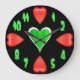 Cette horloge murale est conçue avec de grands coeurs rouges sur chacune des quatre heures (12, 3, 6, 9), avec un coeur vert irlandais à son centre. Fait une grande idée de cadeau pour la Saint-Valentin et également le jour de St Patrick !