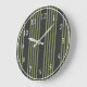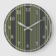 Grande Horloge Ronde Vert olive et charbon de bois cinq bandes motif