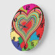 Grande Horloge Ronde Vibrant Rainbow Layered Heart Abstract