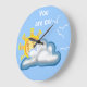 Happy sun shines out from behind a cloud Cheerful clock with happy message