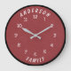 Large round call clock with dark, faux leather-style image for the background. The name is easily changed with the template. Selecting “Personalize this design” offers you several edit options to easily change the text (wording, plus type font, color, size, position) and to possibly edit the design elements. You may also want to scroll down to the section “Transfer design to a product” for a few suggestions about other items this design can be used on.