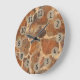 Rough and masculine, yet with a warm color and light. This stone wall photo fully covers the clock, and black digits are easy to read thanks to latte colored dots. A lively design that might even resemble the skin of a girafe...