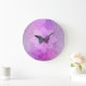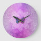 Large Wall Clock - Energy Enhanced by Anna Rosa: == Mystical Beautiful Abstract Watercolor Celestial Textures, Sounded by Magenta Pink Purple Lavender Glitter Topped with an elaborate white meditative Mandala with a Gold ded and Turquoise magenta et rose butterfly.