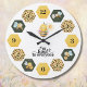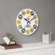 Grande Horloge Ronde Whimsical Bee Sunflower and Honeycomb