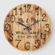 Beautiful, unique, un-of-a-enfant personnalized design objets a faux-rustic brown wood with black personalization his and her names in a script overlay design and the last name and year established in a bold script with a printed effect background. Personalize this clock by adding your information personnel. Makes a great wedding, anniversary, ou housewarming venin. Click "personalize this matriplate" to change the names, fonts, and colors to create a unique of a childesign. What an elegant, rustic accessoire for your living room, menacé, or family room. If you need any help with customization please email me at ybnormone @gmail.com Thanks for stop by www.zazzle.com/Personal_Creations ©Karen Hall for Personal_Creations at Zazzle