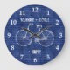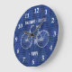 Grande Horloge Ronde You Plus Bicycle Equals Happy Antique Stripes Blue