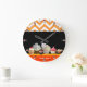 Grande Horloge Ronde YUMMY COLORFUL CUPCAKES DESERT SHOP Orange Chevron