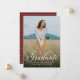 Ce faire-part de graduation simple et classique comprend une grande photo verticale et le mot "diplômé" en écriture. L'aide de coordination peut être customisée avec votre choix d'une école ou d'une couleur préférée (cliquez sur le bouton "personnaliser", sélectionnez "retour", puis "sélectionner une couleur arrière - plan").