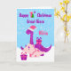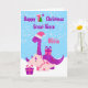Un Dinosaur amusant 1er Noël pour votre grande nièce avec un dessin animé en parties scintillant rose pâle et violet dinosaures enveloppé cadeaux / cadeau et un arrière - plan d'un ciel bleu avec des flocons de neige tombants. Joyeux premier Noël comme typographie festive décorative. Je ferais une belle carte de vacances de Noël à donner à toute petite fille qui aime les dinosaures. L'intérieur gauche de la carte a le mignon Pterodactyl Dinosaur rose portant des cloches de Noël. Peut customiser pour une petite-fille fille fille Dieu fille, soeur, nièce fille, puis personnalisez avec un nom et ajouter / modifier le message intérieur. " à une magnifique grande nièce, beaucoup d'amour"