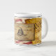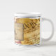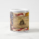 This design is a rich, historical collage perfect for a patriotic or Americana-themed mug. It combines several layers of Revolutionary War iconography into a single panoramic layout.