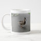Cette énorme tasse présente la photo d'un drôle de canard marchant à travers un chemin en béton. Cet oiseau excentrique était sorti d'un étang et était à la recherche de pain dans un parc tranquille.