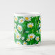 Aquarelle géante Mug ia motif de marguerites blanches aux centres jaunes dorés, sur un arrière - plan vert pâle